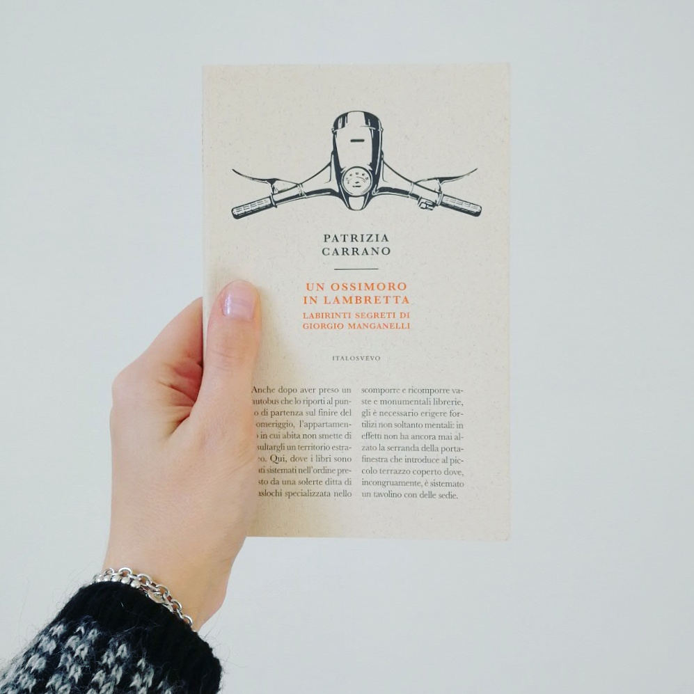 è questo il ritratto che ci offre Patrizia Carrano di colui che viene definito non uomo ma “ossimoro”; infatti il titolo del librino della Carrano, uscito nel 2016 per la nuova ItaloSvevo (numero 3), è proprio Un ossimoro in lambretta. Labirinti segreti di Giorgio Manganelli. Ebbene sì, è del Manga che si parla, lo scrittore, giornalista, traduttore e critico letterario fra i più brillanti e autorevoli – nonché “temuti” – del panorama italiano novecentesco.